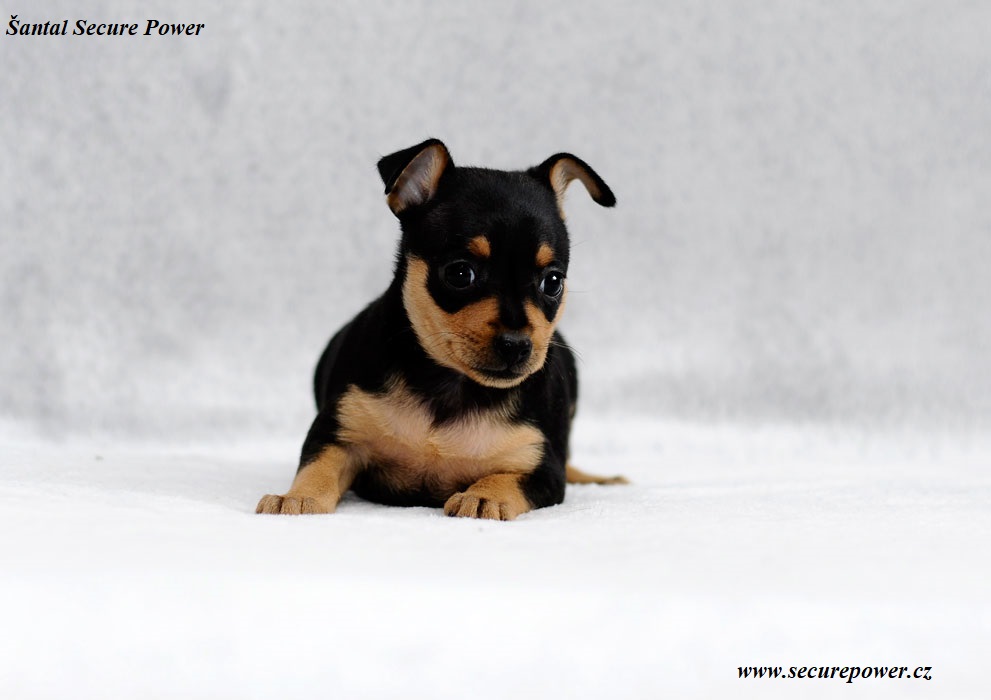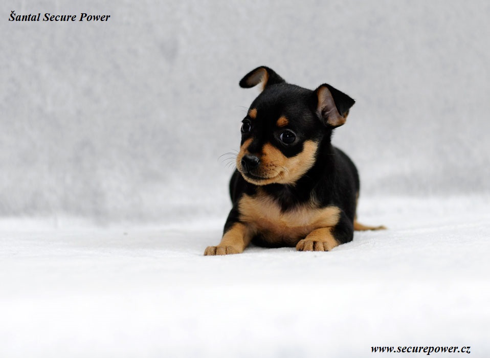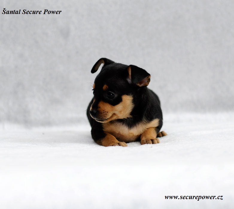 Šantal – fena černá s pálením, přišla na svět 21:50 s váhou 118g