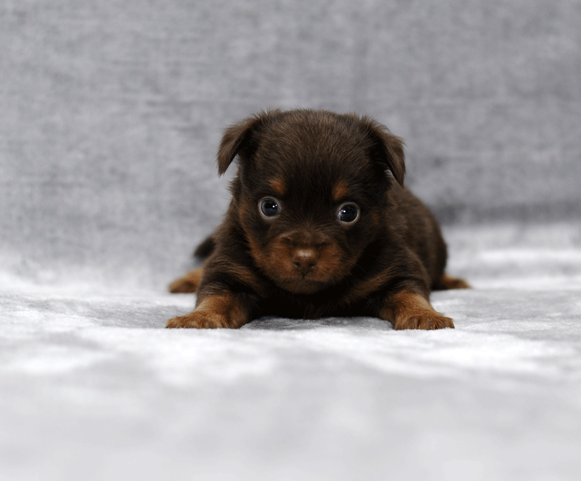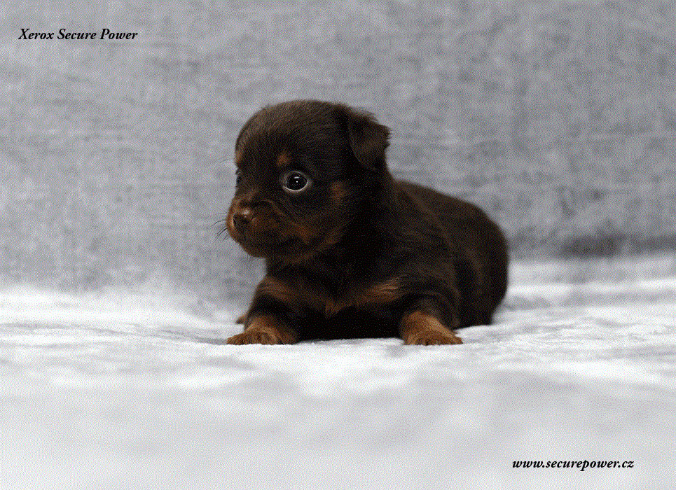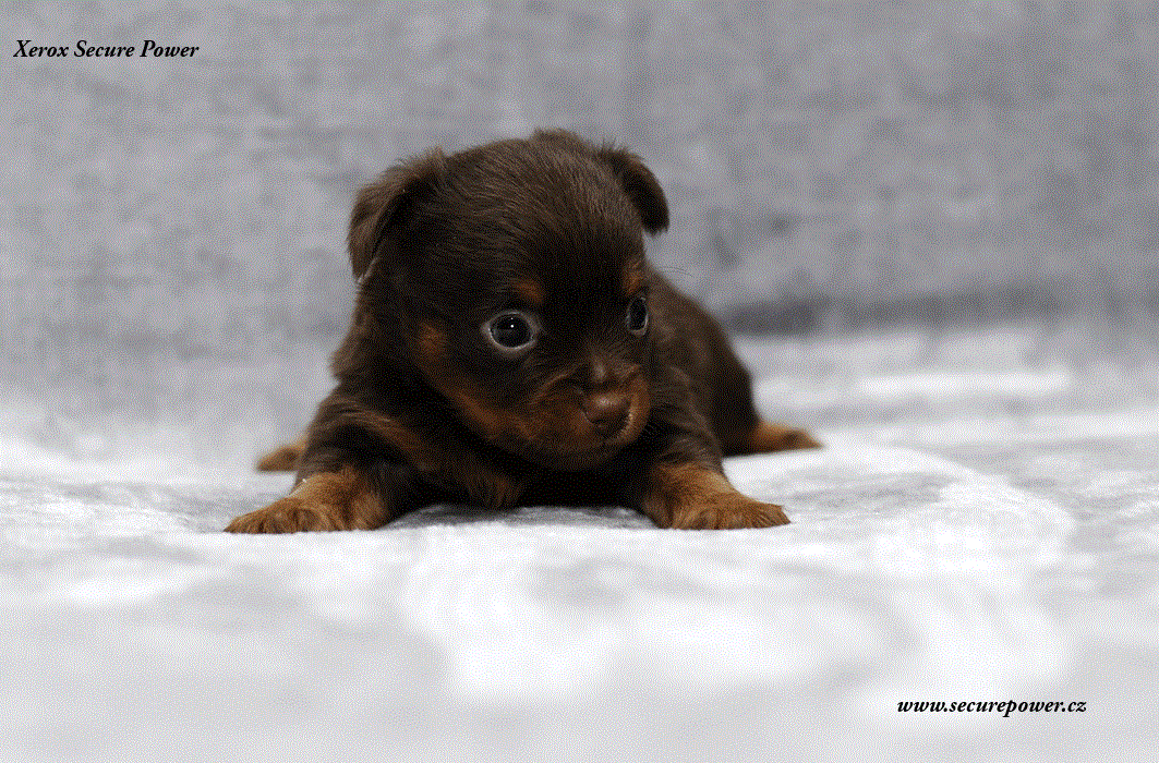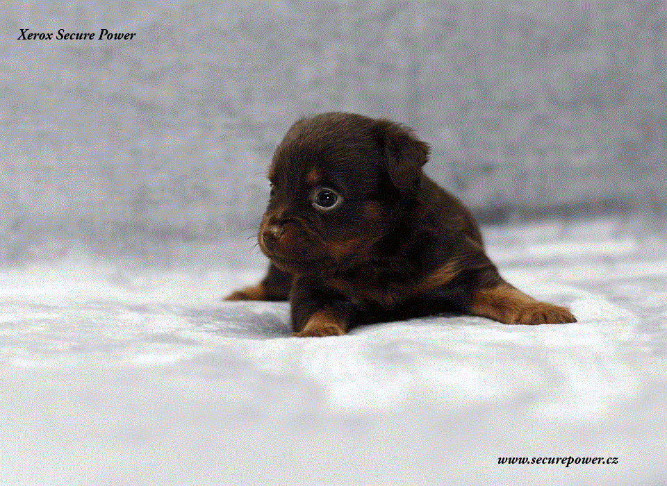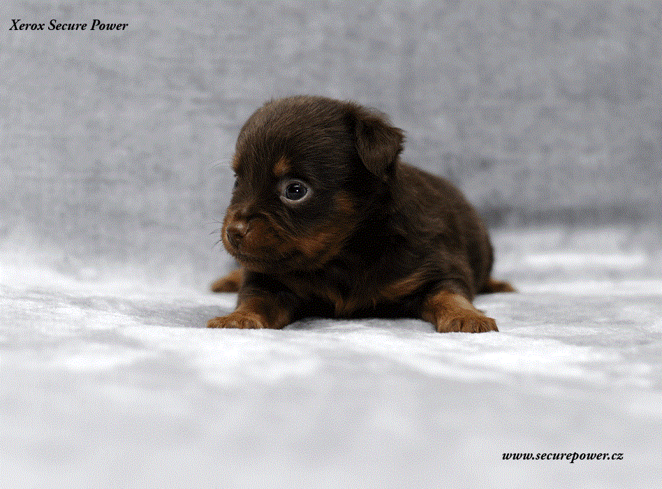 Xerox – pes hnědý s pálením dlouhosrstý, přišel na svět v 8: 26 s váhou 141g
